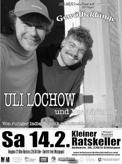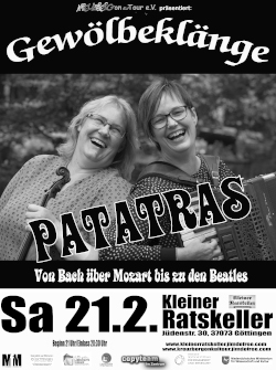 Veranstaltungen im und vom Café Kreuzberg:Mittwoch den 28.01.2026 Einlass: Beginn 20 Uhr Göttinger Old Time Jam *live* im Kleinen Ratskeller Eintritt frei Der Göttinger Old Time Jam Banjo und Fiddle, Gitarre und Bass! Fester Rhythmus und verlockend einfache Melodien. Gesang mit sinnlosen Texten. Musik, die im Jetzt und Hier entsteht. Bei einem Old-Time-Jam kommen Musiker zusammen, spielen traditionelle amerikanische Stücke (Tunes) und haben dabei jede Menge Spaß. Es gibt keine im Voraus entschiedene Reihenfolge der Tunes. Kein stundenlanges Proben, so dass alles klinisch sauber und perfekt klingt. Die Musik ist lebendig und erlaubt Improvisationen, aus den einfachsten Melodien entsteht so mitreißende Musik. Jede Person, die ein passendes Instrument (etwa Gitarre, Mandoline, Banjo, Geige, Bass, Flöte) einigermaßen spielen kann, kann mitmachen. Einzige Bedingung: Das gemeinsame Musizieren steht dabei im Vordergrund! Und jede Person, die kein Instrument spielen kann, ist herzlich eingeladen zuzuhören und eine gute Zeit im Kleinen Ratskeller zu haben. ![]() Infos, Koordination und Anmeldung: uf@kreuzbergonkultour.de Kleiner Ratskeller Jüdenstraße 30 37073 Göttingen ![]() Zurück Samstag den 31.01.2026 Einlass: 20.30 Beginn 21 Uhr "Gewölbeklänge" Von Monstern und Flausen *live* im Kleinen Ratskeller Gewölbeklänge im ältesten Wirtshaus der Stadt mit Von Monstern und Flausen VVK: 10 Euro (Copy Team Göttingen oder über Eventim) AK: 13 Euro Tickets Von Monstern und Flausen Eine Bandbio beginnt gewöhnlich mit jeder Menge Superlativen. Wie beginnt allerdings die Bio einer noch relativ jungen Band? Bei von Monstern und Flausen wäre es durchaus zulässig zu sagen, dass alle Bandmitglieder bereits in bekannten Kasseler Bands (Spit, Alter Kaffee, Pola, Marc McSweeney) gespielt, jede Menge Platten veröffentlicht und Gigs en masse in der Tasche haben. Doch eigentlich müssen sie nicht mit solchen Meilensteinen um sich werfen, denn hier geht es um die Musik. Irgendwo zwischen Indie, Punk und Alternativ hat die Band ihre Zelte aufgeschlagen. Herausgekommen ist weitestgehend Rockmusik mit vielen „ie‘s“: Melodie, Harmonie, Melancholie und eine ordentliche Spur Ha?rt(i)e. Das kombiniert mit ihrer energiegeladenen Live-Show garantiert einen unterhaltsamen und schweißtreibenden Konzertabend. Fragen und Anmerkungen: goe@kreuzbergonkultour.de Kleiner Ratskeller Jüdenstraße 30 37073 Göttingen Homepage Zurück Mittwoch den 04.02.2026 Einlass: 20 Uhr 178. Offene Folksession *live* im Kleinen Ratskeller Einmal im Monat kommen versierte Tunes-Musiker und Freunde des Folk zusammen, um die grüne Insel in Göttingen musikalisch lebendig werden zu lassen. Ob Irish Tunes oder gesungene irische Weisen – zusammen mit Instrumenten wie Gitarre, Fiddel, Harfe, Tin Whistle, Bodhrán, Dudelsack, Akkordeon, Holzquerflöte, Mandoline bzw. Mandola oder der irischen Bouzouki werden alle Gäste und Musiker jeden Monat auf die kleine Insel entführt. Dazu muss man einfach nur die Augen schließen, der Musik lauschen und an seinem kalten Guinness nippen. Die Irish “tunes”-Musiker bilden den harten Kern und mit ihnen und drumherum entwickelt sich eine offene Session – unter Einhaltung gewisser Nettiquette-Regeln. Jeder Interessierte ist herzlich willkommen, Egal ob Musiker oder Zuhörer! Gespielt wird nicht auf einer Bühne mit Verstärkung sondern rein akustisch in einem lockeren gemütlichen und offenen Kreis. Infos, Koordination und Anmeldung: goe@kreuzbergonkultour.de Kleiner Ratskeller Jüdenstraße 30 37073 Göttingen ![]() Zurück Donnerstag den 05.02.2026 Einlass: 18, Beginn 19:30 Uhr Der Göttinger Bluegrass Jam *live* im Kleinen Ratskeller Göttingen Der Göttinger Bluegrass Jam Gespielt und improvisiert werden US-amerikanische Songs und Tunes auf typischen Bluegrass-Instrumenten, wie Gitarre, Fiddle, Banjo, Mandoline, Bass, Dobro und allem, was passt. Auch wenn die Melodien in der Regel recht einfach gehalten sind, werden sie durch Gesang und improvisierte Soli aufgepeppt, so dass jeder Song zu einem einzigartigen Erlebnis wird – sowohl für die Musiker als auch für das Publikum. Kein Stück gleicht dem anderen, sie sind immer wieder neu und aufregend. Ein besonderes Highlight des Bluegrass Jam im Kleinen Ratskeller ist, dass die Stücke alle sehr flott gespielt werden – es darf also nicht nur zugehört, sondern auch gerne mitgewippt werden. Vor allem aber lädt die Musik zum mitsingen ein und das ist herzlich willkommen! Der urige Kleine Ratskeller ist die perfekte Kulisse für den Göttinger Fast Bluegrass Jam und versetzt Musiker und Publikum in andere Gefilde. Damit die Bluegrass Jam auch für alle zu einem schönen Erlebnis wird, gibt es eine Netiquette, an die sich bitte alle Musiker halten sollen. Dazu gehört zum Beispiel: "Anfänger sind willkommen, werden aber gebeten sich anfangs in den 'äußeren Circle' zu setzen und dort mitzuspielen, bis sie sich sicher zurechtfinden." "Spielt nur so laut, dass ihr alle anderen noch hören könnt." "Jammen ist keine Solo-Performance, sondern ein Zusammenspiel aller Musiker." "Die Sänger führen ein Lied an und geben Melodie und Tonart vor." ![]() Infos, Koordination und Anmeldung: uf@kreuzbergonkultour.de Kleiner Ratskeller Jüdenstraße 30 37073 Göttingen ![]() Zurück Donnerstag den 05.02.2026 Einlass: 19.30 Uhr, Beginn 20 Uhr 241. Offene Bühne *live* im Stadion an der Speckstraße Achtung! Ausnahmsweise am ersten Donnerstag im Februar! Gern gesehen sind nicht nur Anfänger, die zum ersten Mal Bühnenluft schnuppern möchten, sondern auch Profis, die einfach Spaß am Auftreten haben oder neue Stücke ausprobieren wollen. Zwar überwiegen die musikalischen Darbietungen, doch die Offene Bühne ist vor allem eins: offen! Willkommen sind deswegen auch Poeten, Schauspieler, Komiker, Zauberer, Tänzer uvm. Die Offene Bühne bietet immer am zweiten Donnerstag im Monat die Möglichkeit sich auf der Bühne auszuprobieren, andere Musiker 